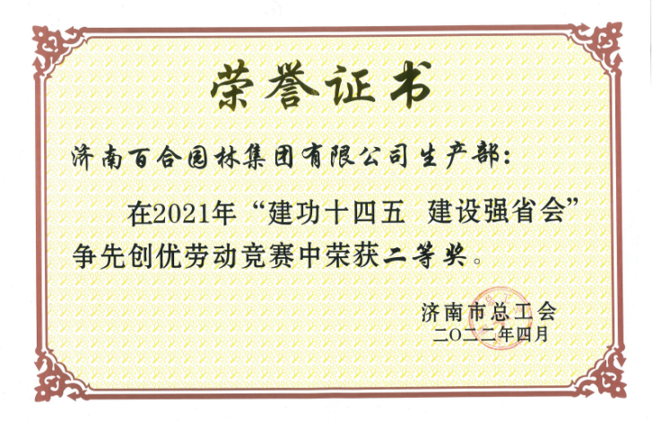 百合園林集團(tuán)生產(chǎn)部被評(píng)為勞動(dòng)競賽先進(jìn)班組二等獎(jiǎng)