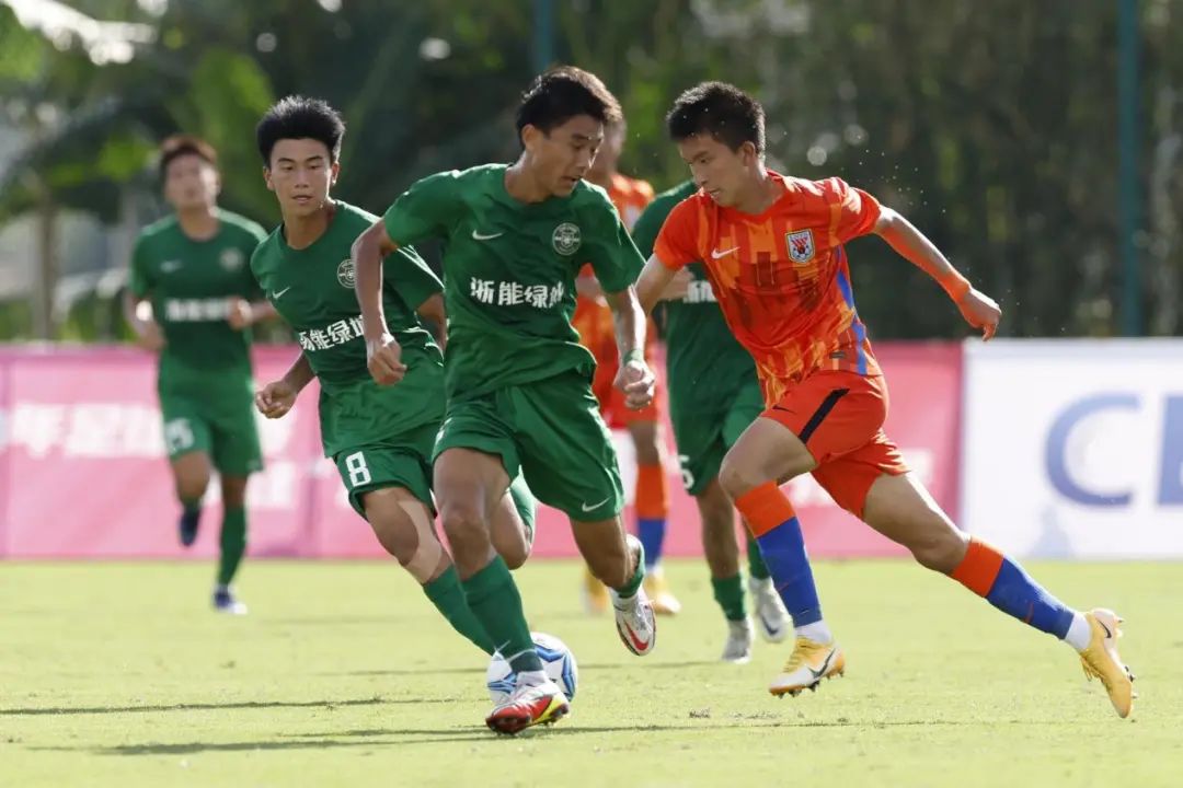 29日下午,山東泰山U16隊對陣浙江職業(yè)足球俱樂部U17A隊。第21分鐘,山東泰山U16隊22號劉騏瑋大腳開出門球,37號王昊斌前場接球后單刀破門,場上比分1-0,山東泰山U16隊領(lǐng)先,并將比分保持到上半場結(jié)束。下半場開始后雙方易邊再戰(zhàn)。第51分鐘,浙江U17A隊隊員利用個人能力突破后射門得分,場上比分1-1。第72分鐘,浙江U17A隊利用山東泰山U16隊門前空檔再得一分,將比分反超。最終,山東泰山U16隊1-2不敵陣浙江職業(yè)足球俱樂部U17A隊。