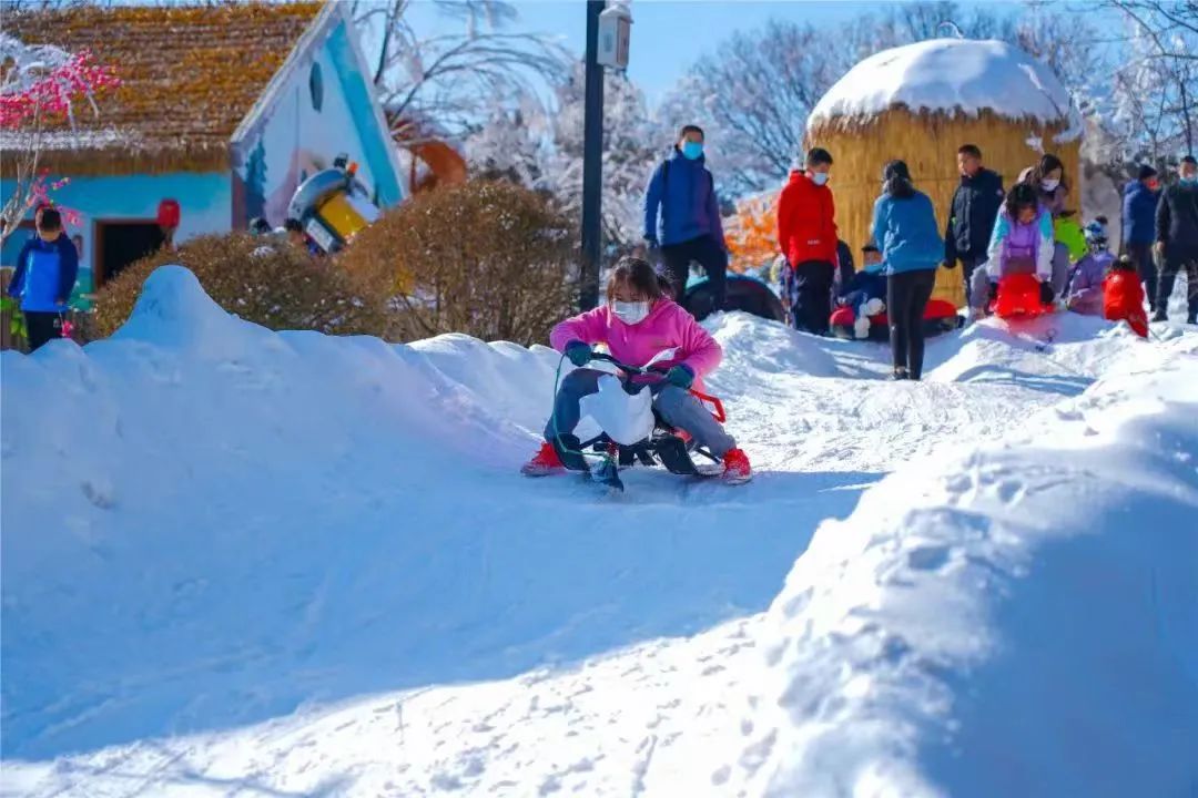 元旦假期,游人們?cè)谂荞R嶺·齊魯雪鄉(xiāng)滑雪圈、坐雪橇、騎雪地摩托、與萌寵互動(dòng)……這個(gè)沉浸式冰雪樂園,讓大小朋友們玩得不亦樂乎!