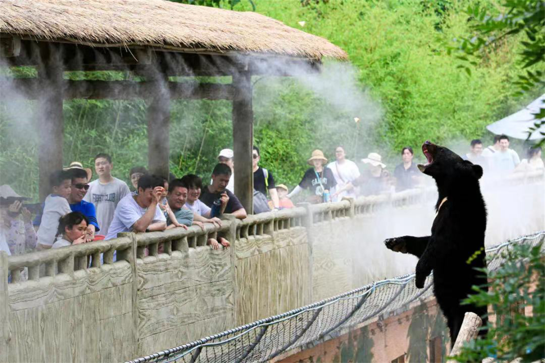 濟(jì)南野生動(dòng)物世界為了保障游客清涼游園準(zhǔn)備了各種降溫措施。景區(qū)特色水霧噴淋系統(tǒng)搭配高達(dá)95%的森林綠化,讓游客及4000余只野生動(dòng)物仿佛置身原野叢林,體感溫度直線下降。端午小長(zhǎng)假期間,景區(qū)營(yíng)業(yè)時(shí)間延長(zhǎng)至晚21:00,最晚入園時(shí)間至17:00,胖胖動(dòng)物城潮玩互動(dòng)、奇幻光影主題燈光、森林仙子夢(mèng)幻巡游、民謠濟(jì)南演出、夏日泡泡派對(duì)、侏羅紀(jì)樂園奇遇、網(wǎng)紅摩天輪點(diǎn)亮星空、篝火星辰狂歡等多個(gè)互動(dòng)體驗(yàn)項(xiàng)目讓游客暢玩12小時(shí)不重樣。避開烈日當(dāng)空,夜幕降臨下的動(dòng)物世界更顯神秘刺激,游客在這里不僅可以清涼游園,看到花樣繁多的動(dòng)物們避暑方式,還可以體驗(yàn)動(dòng)物主題民宿,夜宿動(dòng)物世界。